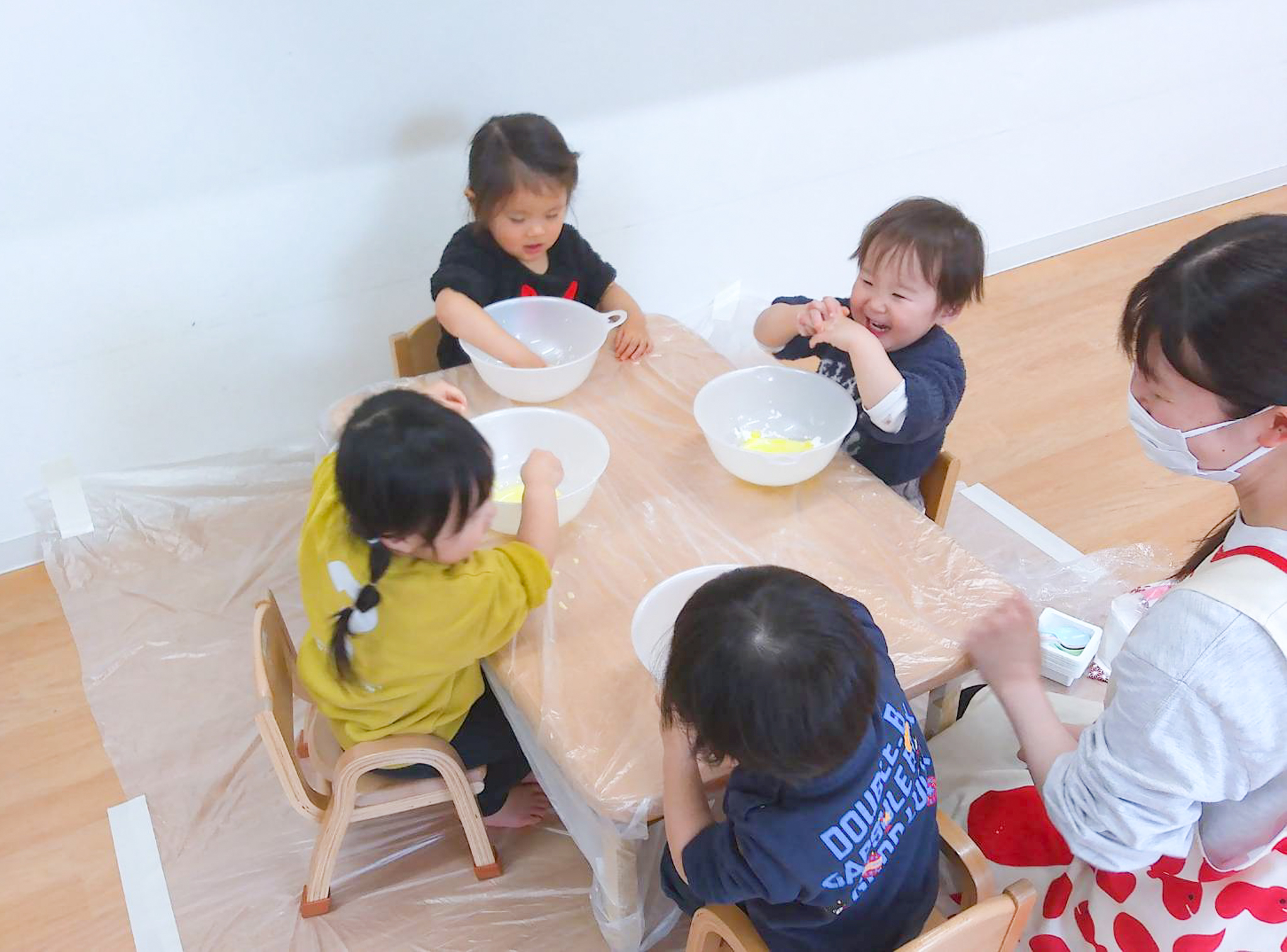 | 9:00~ | 検温、体調チェック、遊び(室内、戸外)、午前睡 |